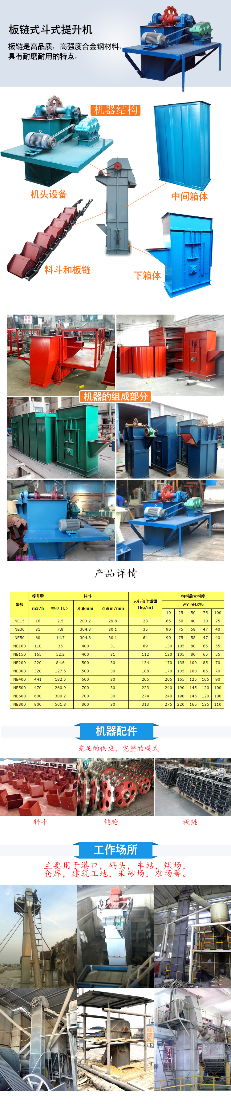 【產(chǎn)品簡介】NE系列板鏈?zhǔn)蕉肥教嵘龣C(jī)本機(jī)系流入式喂料,物料流入料斗內(nèi)靠板鏈提升到頂端,在物料重力作用下自行卸料。本系列提升機(jī)規(guī)格多(NE15~NE800共11種)提升量廣;且生產(chǎn)能高,能耗較低,可逐步代替其他類型提升機(jī),其主要參數(shù)見下表。該機(jī)采用全封式機(jī)殼鏈速低,幾乎無回料現(xiàn)象