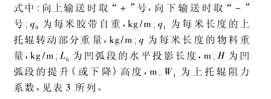 平穩(wěn)運(yùn)行。實(shí)際的設(shè)計(jì)計(jì)算表明,對(duì)于一般的皮帶輸送機(jī)凹弧段半徑的計(jì)算,式( 1) 的計(jì)算結(jié)果可滿足要求。但在某些條件下,式( 2) 、( 3) 的計(jì)算結(jié)果也會(huì)大于式( 1) 的所得,從而導(dǎo)致半徑過(guò)大給工藝布置帶來(lái)一定的困難。查式( 2) 、( 3) ,可采取加大拉緊力的方法以增大Tc值,使其計(jì)算結(jié)果得到減小。下面將討論凹弧段起始點(diǎn)張力Tc的計(jì)算方法。